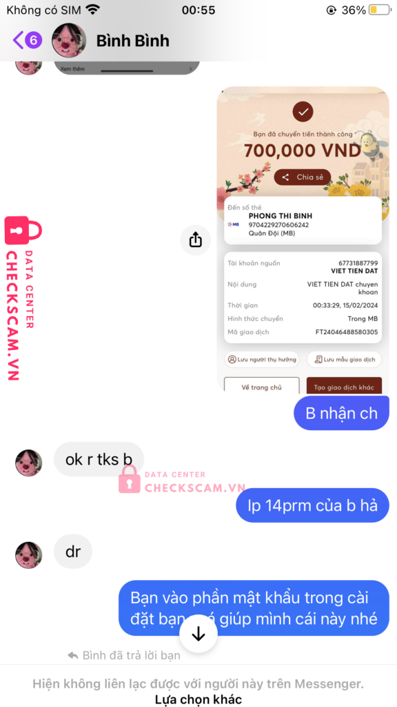Scammer Alert: Phong Yhi Binh Reported: November 16, 2024 Scammer Information Full Name: Phong Yhi Binh Payment Gate: Mb Payment Account: 9704229270606242 Category: Marketplace scams Source: Checkscam Evidence Files Report Description Lừa đảo kênh tiktok bán xong rồi lại lấy kênh về Comments Your comment Add Comment No comments yet. Be the first to share your experience with this scammer.