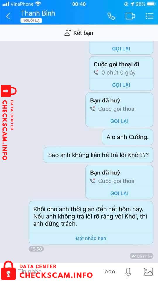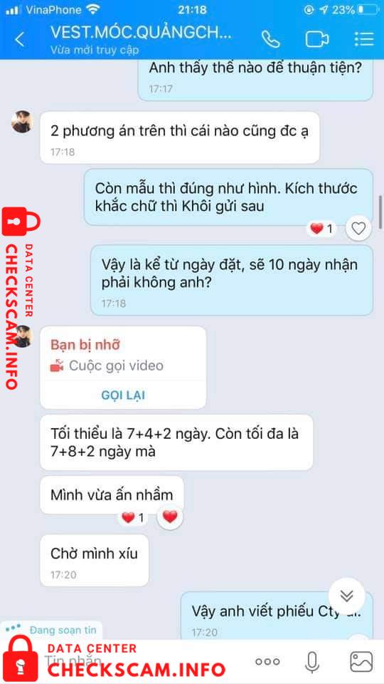 Tôi sống và làm việc tại Sài Gòn. Tôi có tìm đối tác mua hộ hàng TQ tháng trước. Tin tưởng gọi FaceTime làm việc trực tiếp và gửi thông tin giấy tờ tuỳ thân. Nhưng nó mất NHÂN CÁCH và cũng không có CỐT CÁCH làm người, nhận cọc hơn 4tr và hứa hẹn mãi cho đến khi gần ngày giao hàng nó xoá mọi liên hệ.