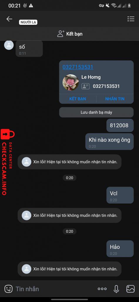 Scammer Alert: Quân Reported: November 16, 2024 Scammer Information Full Name: Quân Phone Number: 0346988504 Payment Gate: Momo Payment Account: 0346988504 Category: Marketplace scams Source: Checkscam Evidence Files Report Description Râc scam 15k Comments Your comment Add Comment No comments yet. Be the first to share your experience with this scammer.