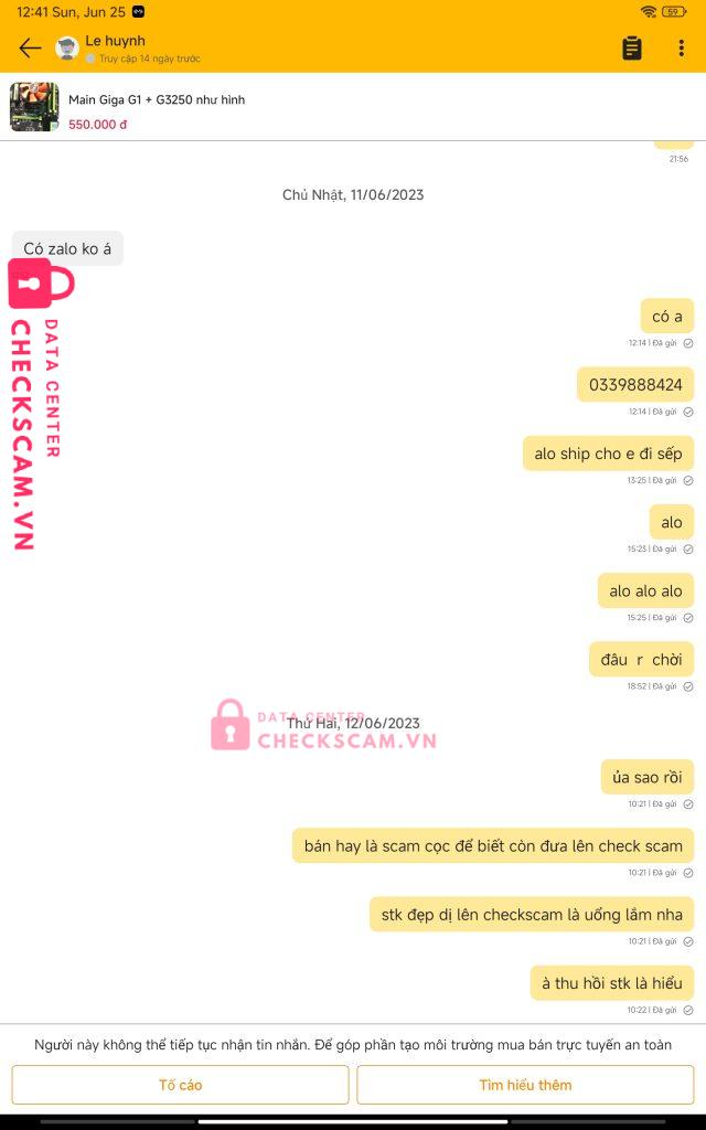 Scammer Alert: Quang minh tien Reported: November 16, 2024 Scammer Information Full Name: Quang minh tien Payment Gate: Mb Payment Account: 66660003000 Category: Marketplace scams Source: Checkscam Evidence Files Report Description Lừa cọc e hết 100k sao ad k duyệt vậy ad Comments Your comment Add Comment No comments yet. Be the first to share your experience with this scammer.