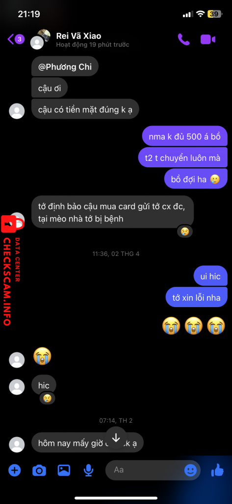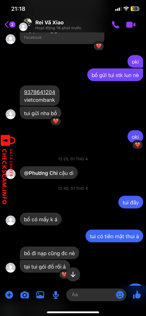 Scammer Alert: rei vã xiao Reported: November 16, 2024 Scammer Information Full Name: rei vã xiao Payment Gate: vietcombank Payment Account: 9378641204 Category: Marketplace scams Source: Checkscam Evidence Files Report Description Comments Your comment Add Comment No comments yet. Be the first to share your experience with this scammer.