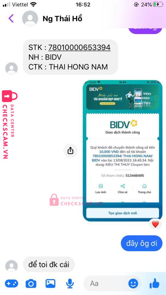 Scammer Alert: THAI HONG NAM Reported: November 16, 2024 Scammer Information Full Name: THAI HONG NAM Payment Gate: BIDV Payment Account: 78010000653394 Category: Marketplace scams Source: Checkscam Evidence Files Report Description Scam Comments Your comment Add Comment No comments yet. Be the first to share your experience with this scammer.