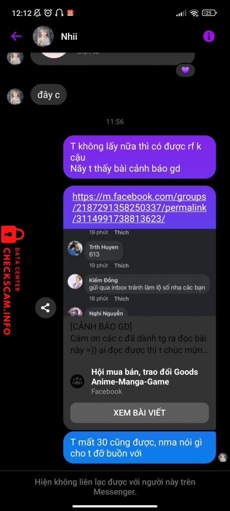 Scammer Alert: Thai Thanh Nhat Reported: November 16, 2024 Scammer Information Full Name: Thai Thanh Nhat Payment Gate: Vietinbank Payment Account: 106874734587 Category: Marketplace scams Source: Checkscam Evidence Files Report Description Có 30k cũng scam là sao chị gái Comments Your comment Add Comment No comments yet. Be the first to share your experience with this scammer.