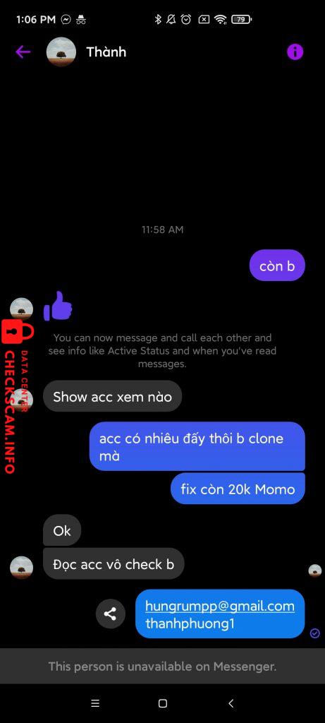 Scammer Alert: Thàn Reported: November 16, 2024 Scammer Information Full Name: Thàn Phone Number: 0932263940 Payment Gate: Mb bank Payment Account: 0932263940 Category: Marketplace scams Source: Checkscam Evidence Files Report Description Comments Your comment Add Comment No comments yet. Be the first to share your experience with this scammer.