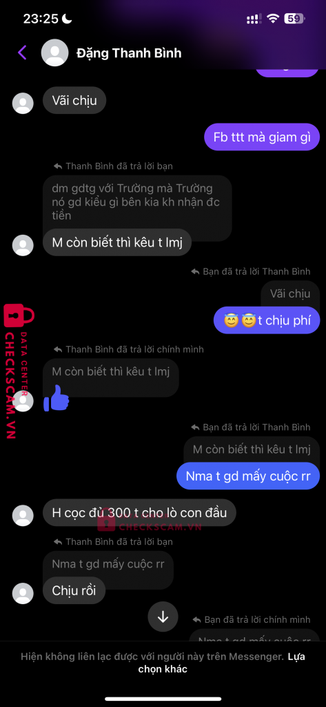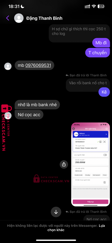 Scammer Alert: Thanh Bình Reported: November 16, 2024 Scammer Information Full Name: Thanh Bình Phone Number: 0976069531 Payment Gate: Mb Bank Payment Account: 0976069531 Category: Marketplace scams Source: Checkscam Evidence Files Report Description Nó lừa ae đấy dmm. Bày đặt random dmn Comments Your comment Add Comment No comments yet. Be the first to share your experience with this scammer.