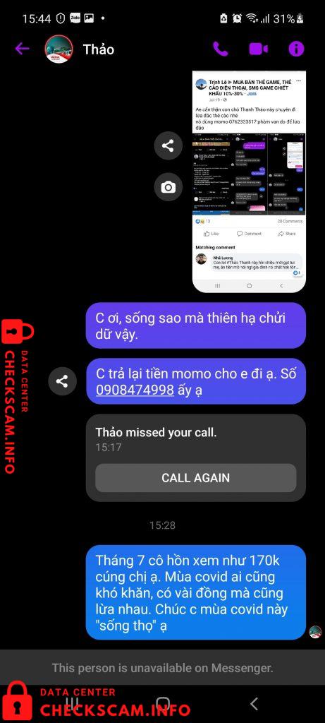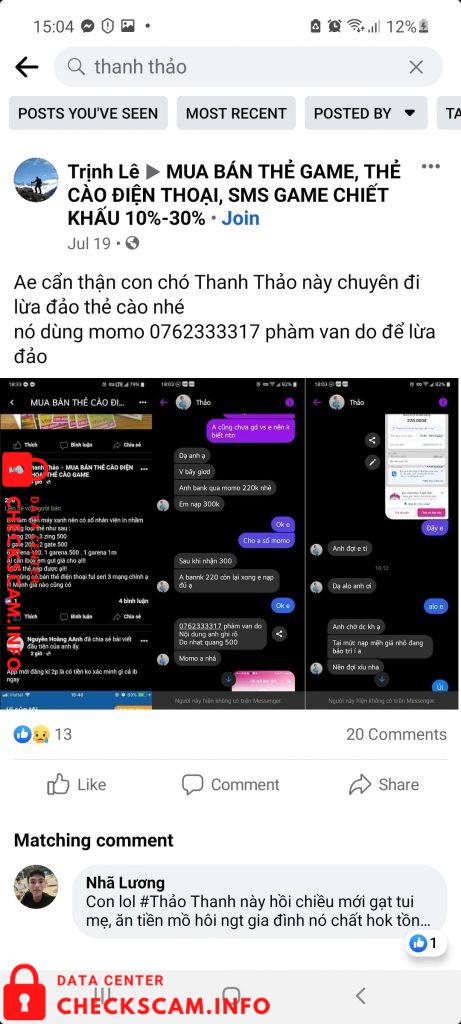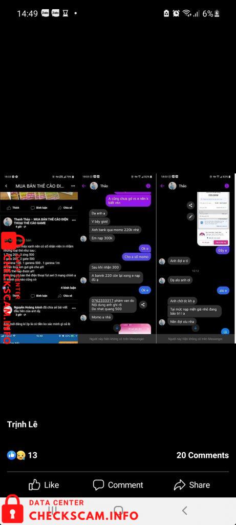 Người này chuyên đi lừa trong các group mua bán thẻ cào qua momo số 0762333317