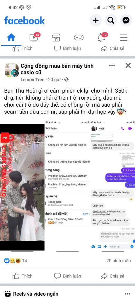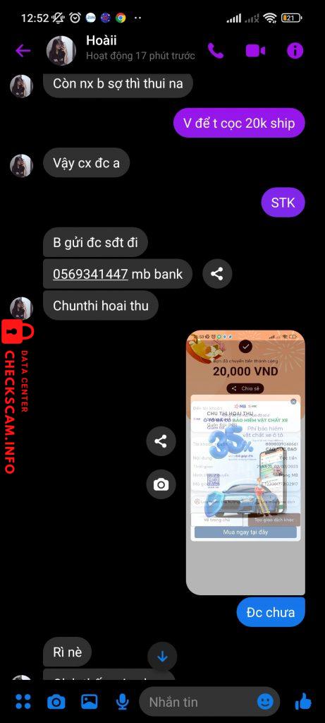 Scammer Alert: Thu hoàii Reported: November 16, 2024 Scammer Information Full Name: Thu hoàii Phone Number: 0569341447 Payment Gate: MBBANK Payment Account: 0569341447 Category: Marketplace scams Source: Checkscam Evidence Files Report Description Lừa đảo mua bán Comments Your comment Add Comment No comments yet. Be the first to share your experience with this scammer.