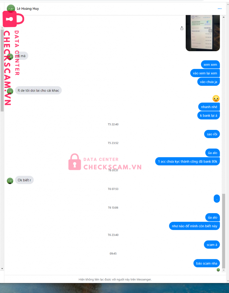 Scammer Alert: to quoc su Reported: November 16, 2024 Scammer Information Full Name: to quoc su Phone Number: 0326127436 Payment Gate: vpbank Payment Account: 0326127436 Category: Marketplace scams Source: Checkscam Evidence Files Report Description lừa đảo , không bank lại tiền chặn nic facebook Comments Your comment Add Comment No comments yet. Be the first to share your experience with this scammer.