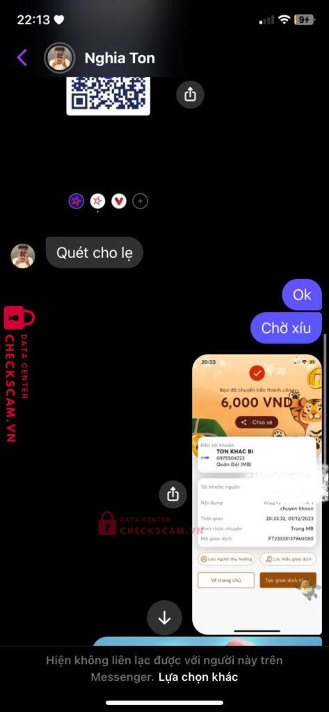 Scammer Alert: TON KHAC BI Reported: November 16, 2024 Scammer Information Full Name: TON KHAC BI Payment Gate: Mb Payment Account: 0975504723 Category: Marketplace scams Source: Checkscam Evidence Files Report Description Scam Comments Your comment Add Comment No comments yet. Be the first to share your experience with this scammer.
