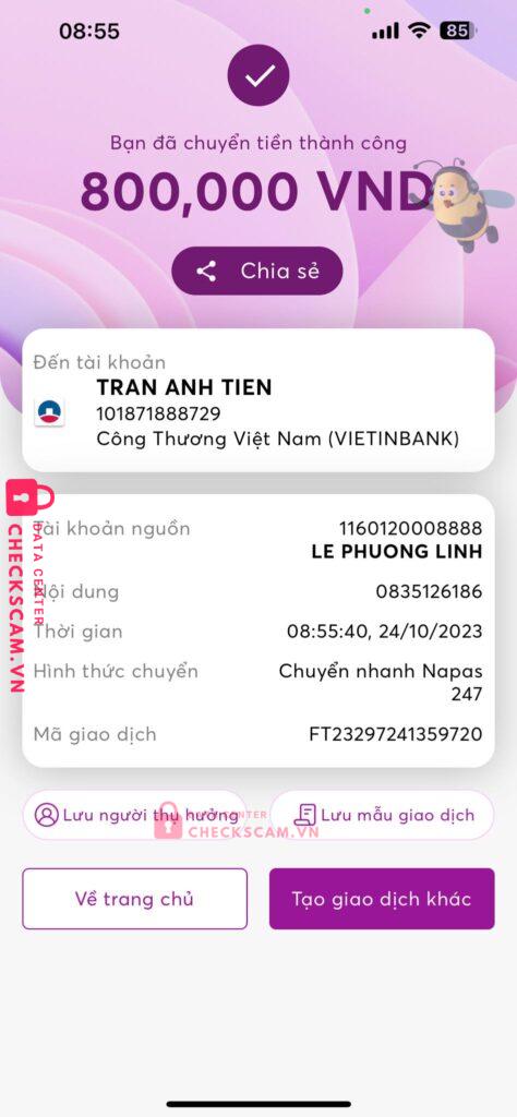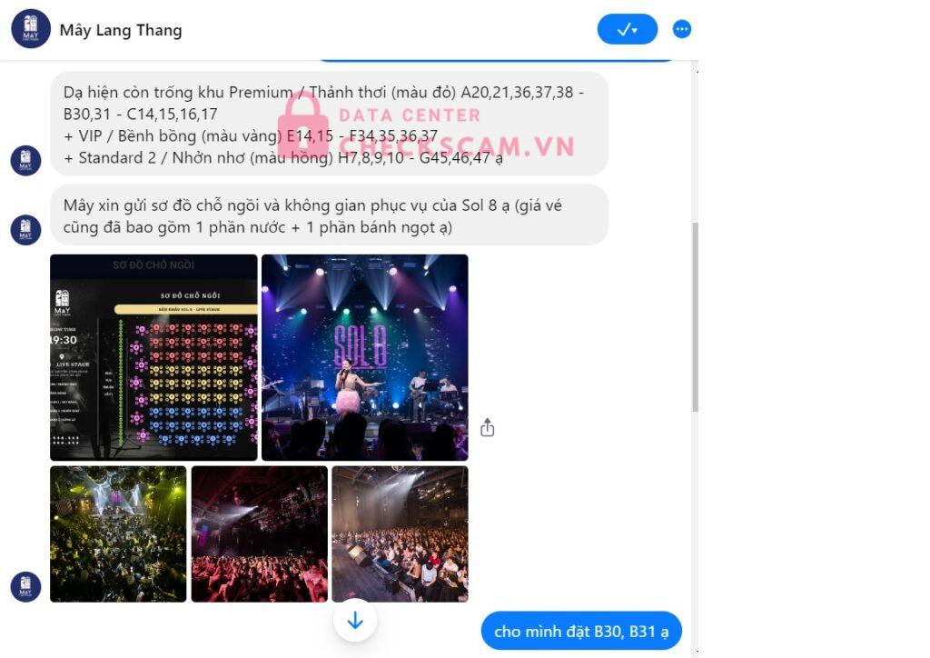 Fake fanpage của Mây Lang Thang, chạy quảng cáo show của ca sĩ Lê Hiếu – Vũ vào ngày 29/10. Tôi thấy bài chạy quảng cáo trên FB và nghĩ là thật. Sau đó đặt vé và tiến hành chuyển tiền.