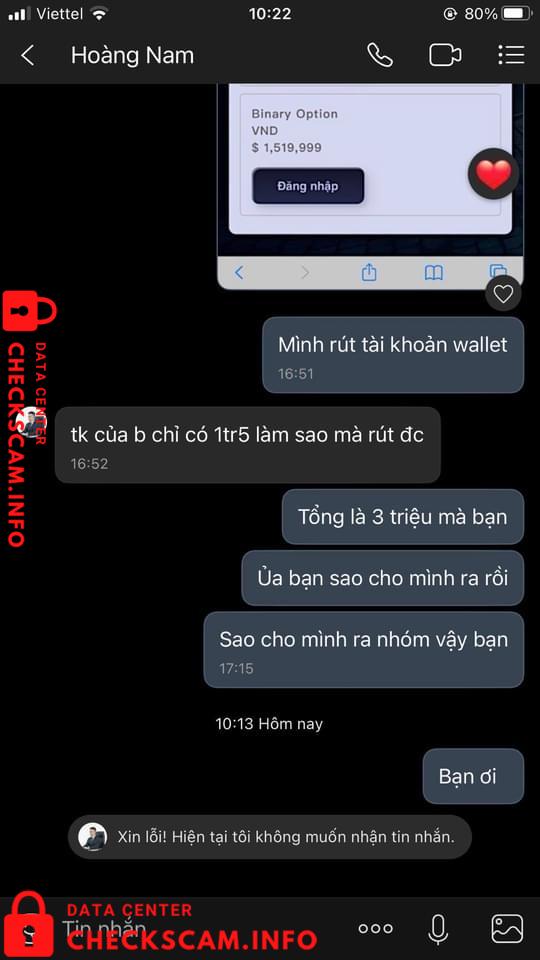 Scammer Alert: Trần Bình Trọng Reported: November 16, 2024 Scammer Information Full Name: Trần Bình Trọng Payment Gate: techcom bank Payment Account: 19036960082023 Category: Marketplace scams Source: Checkscam Evidence Files Report Description lừa đảo từ app đa cấp online . hãy cảnh giác. Comments Your comment Add Comment No comments yet. Be the first to share your experience with this scammer.