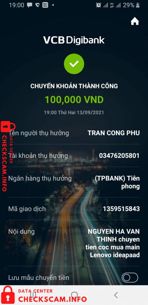 Scammer Alert: Trần Công Phú Reported: November 16, 2024 Scammer Information Full Name: Trần Công Phú Phone Number: 0393886860 Payment Gate: Tpbank Payment Account: 03476205801 Category: Marketplace scams Source: Checkscam Evidence Files Report Description Thỏa thuận bán hàng đã chuyển cọc 100.000 vnđ sau đó tắt máy, xóa zalo không liên.lạc được Comments Your comment Add Comment No comments yet. Be the first to share your experience with this scammer.