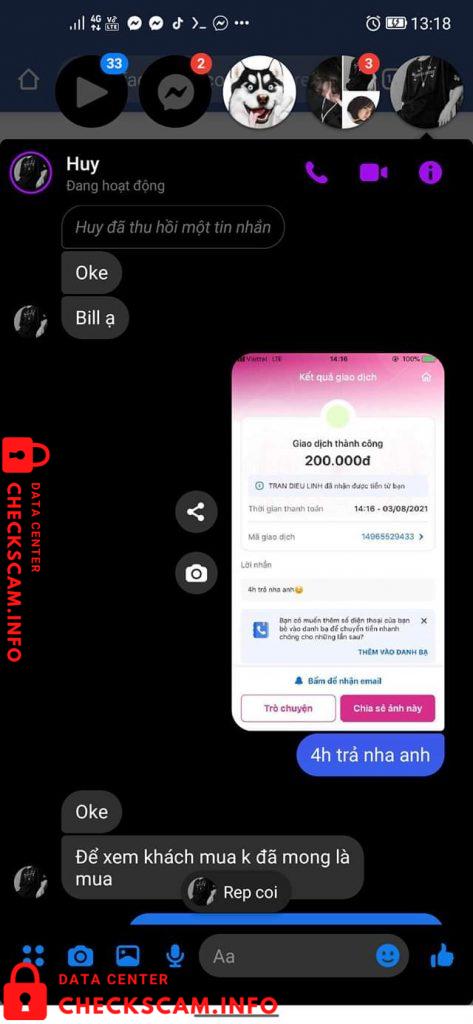 Scammer Alert: Tran Dieu Linh Reported: November 16, 2024 Scammer Information Full Name: Tran Dieu Linh Phone Number: 0379137453 Payment Gate: MoMo Payment Account: 0379137453 Category: Marketplace scams Source: Checkscam Evidence Files Report Description Vay 250k không trả còn kiếm lý do để vay thêm, khi không cho vạy thì có ý xúc phạm người khác Comments Your comment Add Comment No comments yet. Be the first to share your experience with this scammer.