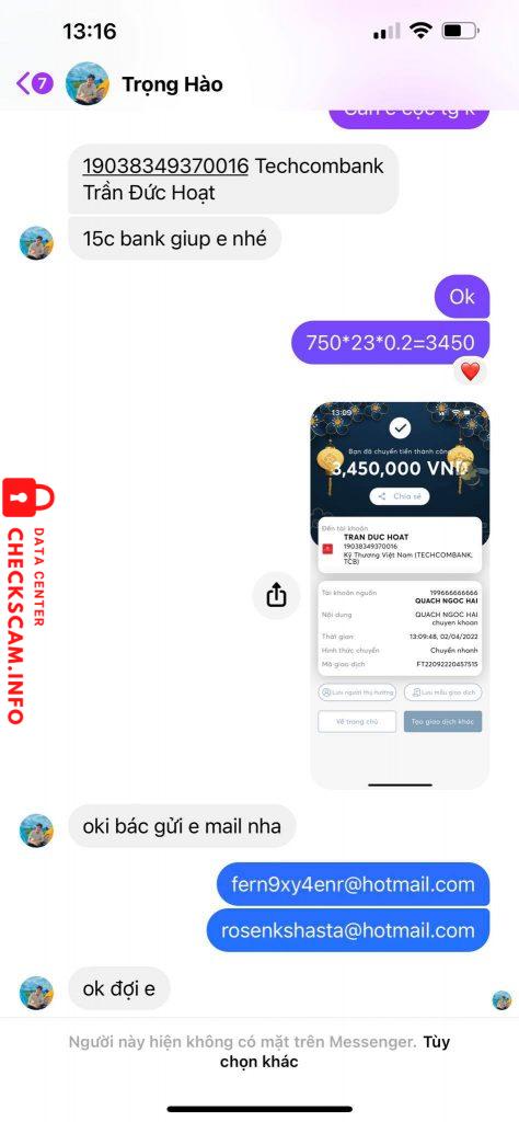 Scammer Alert: Trần Đức Hoạt Reported: November 16, 2024 Scammer Information Full Name: Trần Đức Hoạt Payment Gate: Techcombank Payment Account: 19038349370016 Category: Marketplace scams Source: Checkscam Evidence Files Report Description Comments Your comment Add Comment No comments yet. Be the first to share your experience with this scammer.