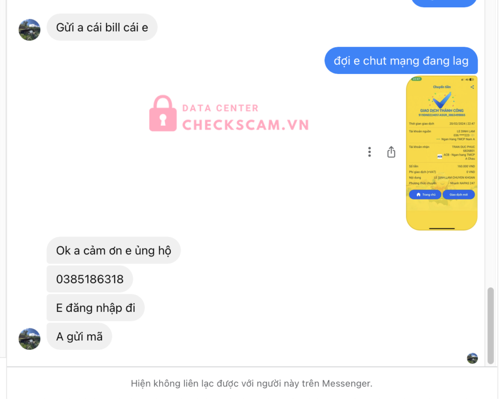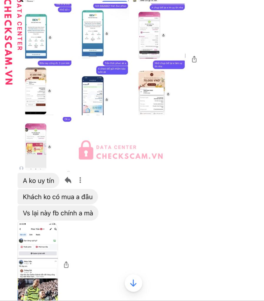 Scammer Alert: TRAN DUC PHUC Reported: November 16, 2024 Scammer Information Full Name: TRAN DUC PHUC Payment Gate: ACB Payment Account: 6826801 Category: Marketplace scams Source: Checkscam Evidence Files Report Description Tìm mua acc tiktok, có cảnh giác, có gửi bill làm tin mà lơ là không thấy tin nhắn khách rep lại nên bị lừa. Comments Your comment Add Comment No comments yet. Be the first to share your experience with this scammer.
