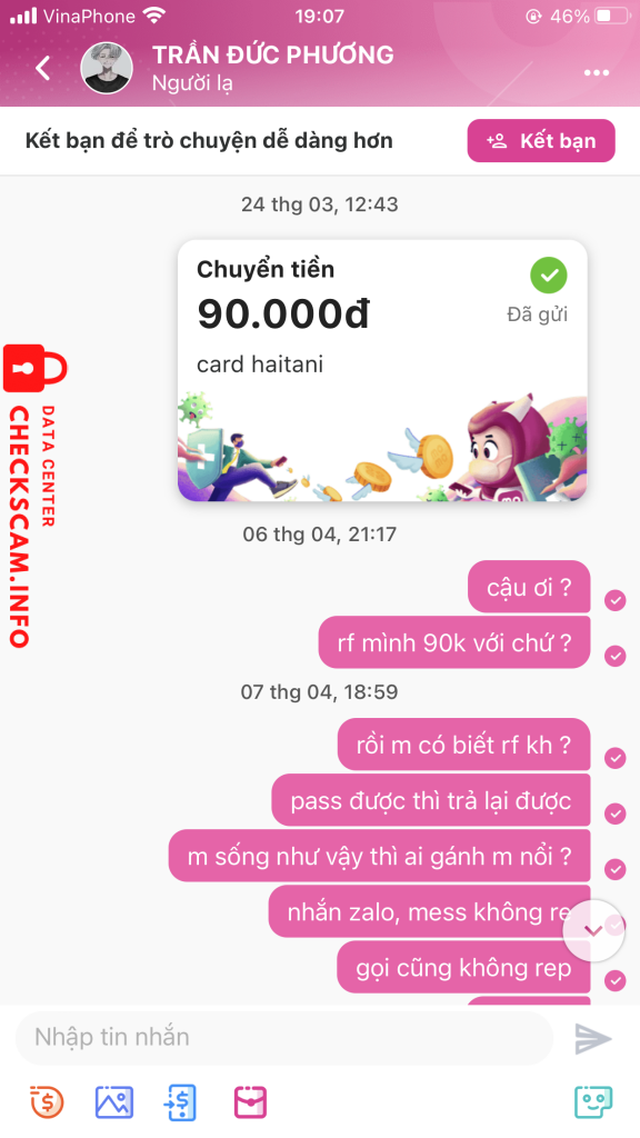 Scammer chuyên nghiệp, lộng hành trong group anime và kha khá acclone. Mình check không kĩ nên đã bị lừa nên up lên nếu mọi người có thấy thì né, gặp stk như vậy cũng né luôn nhe.