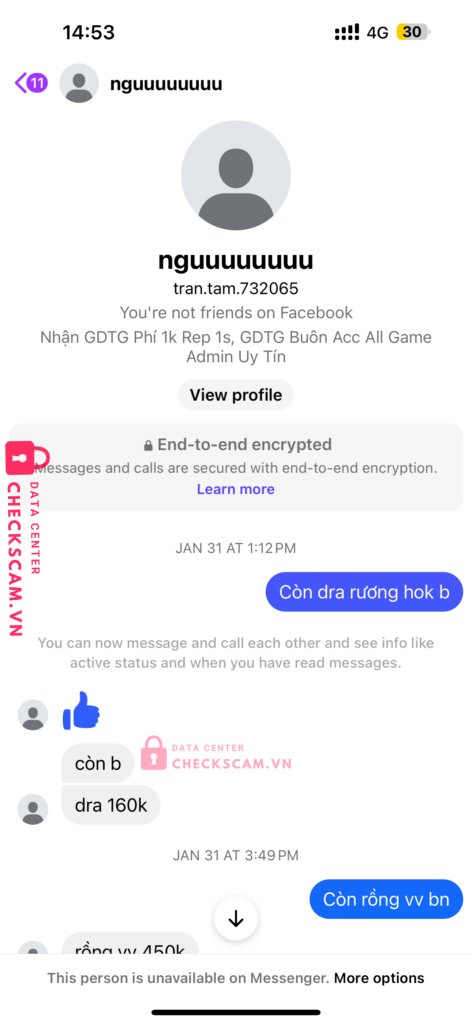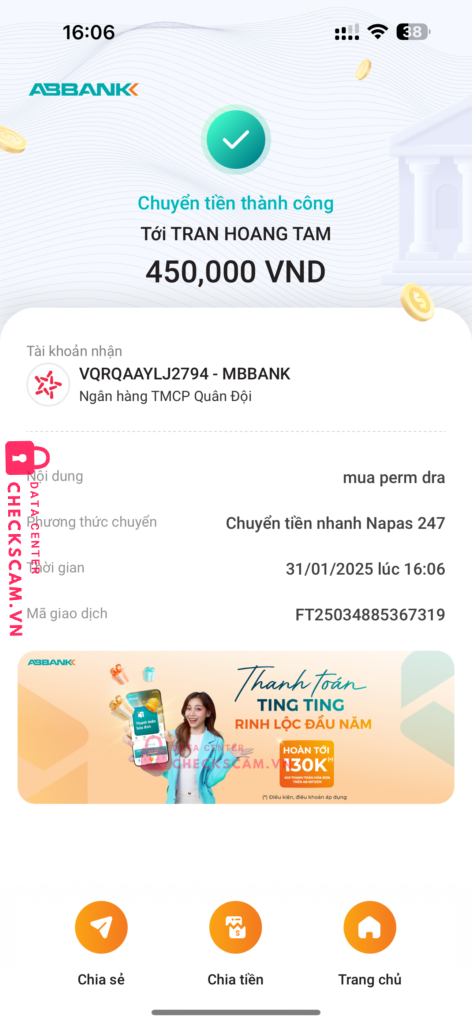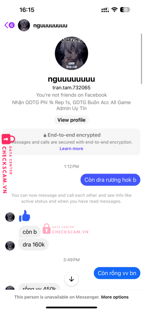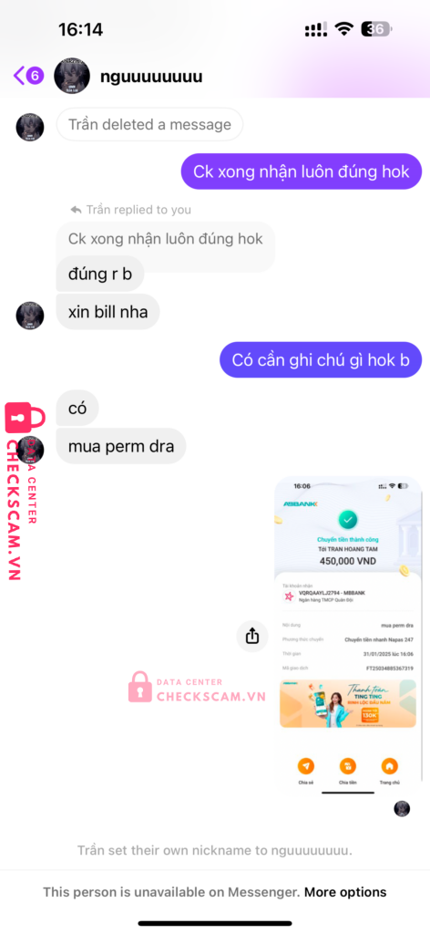 Scammer Alert: TRAN HOANG TAM Reported: March 7, 2025 Scammer Information Full Name: TRAN HOANG TAM Payment Gate: MBbank Payment Account: 900182 Category: Marketplace scams Source: Checkscam Evidence Files Report Description Scam roblox và blox fruit game Comments Your comment Add Comment No comments yet. Be the first to share your experience with this scammer.