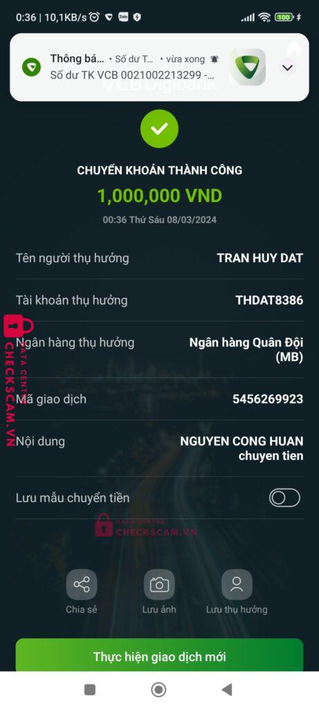 Scammer Alert: TRAN HUY DAT Reported: November 16, 2024 Scammer Information Full Name: TRAN HUY DAT Payment Gate: Ngân hàng Quân Đội MB Payment Account: THDAT8386 Category: Marketplace scams Source: Checkscam Evidence Files Report Description Lợi dụng lòng tin mở khoá facebook hòng chiếm đoạt nick ,số điện thoại sử dụng : 0968901310, email lừa đảo : [email protected] Comments Your comment Add Comment No comments yet. Be the first to share your experience with this scammer.