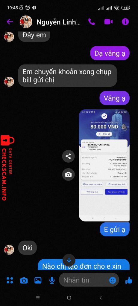 Scammer Alert: Tran Huyen Trang Reported: November 16, 2024 Scammer Information Full Name: Tran Huyen Trang Phone Number: 0357225263 Payment Gate: MB Payment Account: 0357225263 Category: Marketplace scams Source: Checkscam Evidence Files Report Description Lừa đảo, chiếm đoạt tài sản thông qua internet Comments Your comment Add Comment No comments yet. Be the first to share your experience with this scammer.