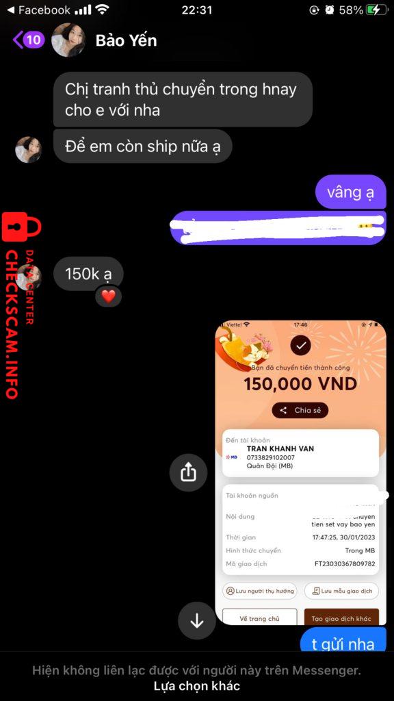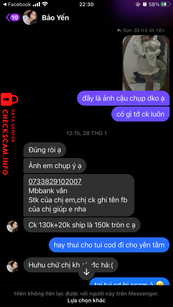 Scammer Alert: TRAN KHANH VAN Reported: November 16, 2024 Scammer Information Full Name: TRAN KHANH VAN Payment Gate: mb bank Payment Account: 0733829102007 Category: Marketplace scams Source: Checkscam Evidence Files Report Description lừa đảo bán quần áo Comments Your comment Add Comment No comments yet. Be the first to share your experience with this scammer.