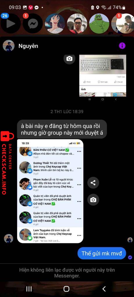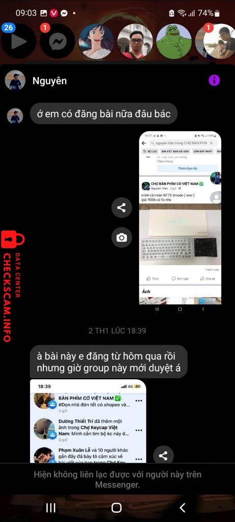 Scammer Alert: Trần Khôi Nguyên Reported: November 16, 2024 Scammer Information Full Name: Trần Khôi Nguyên Payment Gate: techcombank Payment Account: 601501651002 Category: Marketplace scams Source: Checkscam Evidence Files Report Description Thằng này nó lừa của mình 800k , nó đăng bán bàn phím trong các group a nào giúp e tóm đc nó thì e có hậu tạ Comments Your comment Add Comment No comments yet. Be the first to share your experience with this scammer.