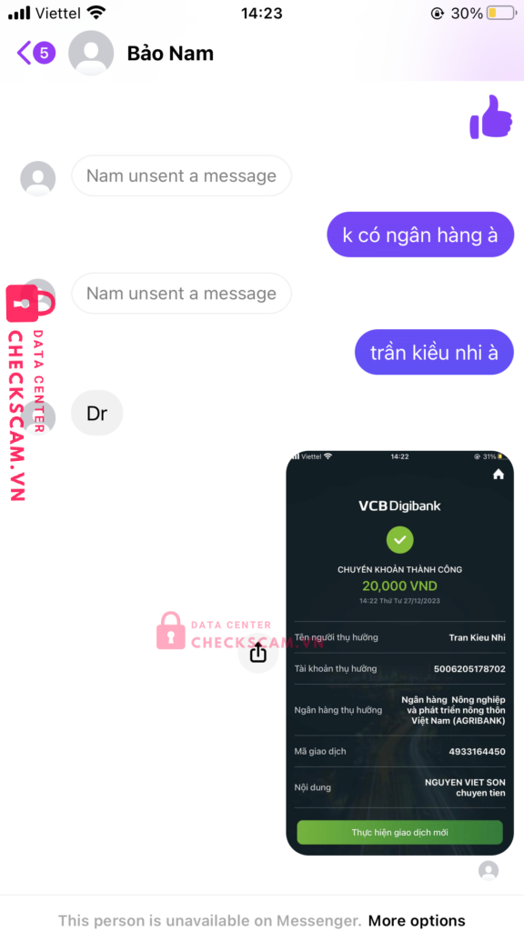 Scammer Alert: Trần Kiều Nhi Reported: November 16, 2024 Scammer Information Full Name: Trần Kiều Nhi Payment Gate: Agribank Payment Account: 5006205178702 Category: Marketplace scams Source: Checkscam Evidence Files Report Description Lừa đảo Comments Your comment Add Comment No comments yet. Be the first to share your experience with this scammer.