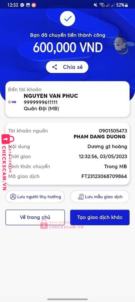 Scammer Alert: TRAN MINH HOANG Reported: November 16, 2024 Scammer Information Full Name: TRAN MINH HOANG Payment Gate: Viettinbank Payment Account: 106877443224 Category: Marketplace scams Source: Checkscam Evidence Files Report Description Anh em cẩn thận thằng này nhé Nó bán nhóm telegram nó không chuyển quyền sở hữu Anh em tránh thằng này ra Thằng Trần Minh Hoàng Comments Your comment Add Comment No comments yet. Be the first to share your experience with this scammer.