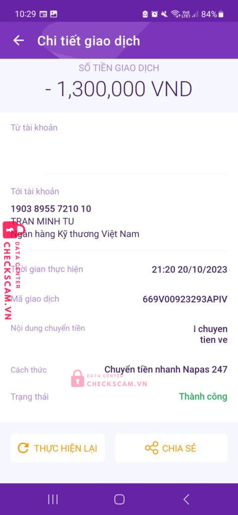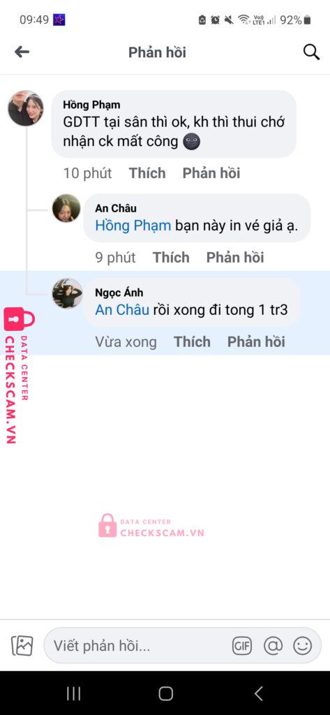 Scammer Alert: TRẦN MINH TÚ Reported: November 16, 2024 Scammer Information Full Name: TRẦN MINH TÚ Payment Gate: Techcombank Payment Account: 19038955721010 Category: Marketplace scams Source: Checkscam Evidence Files Report Description Nhầm đánh vào tâm lí gấp rút tìm vè của fan kpop mà bạn ấy đã in đại trà thẻ giả cùng với mã QR giả để lừa đảo nhầm chiếm dụng và chuộc lợi cá nhân. Comments Your comment Add Comment No comments yet. Be the first to share your experience with this scammer.