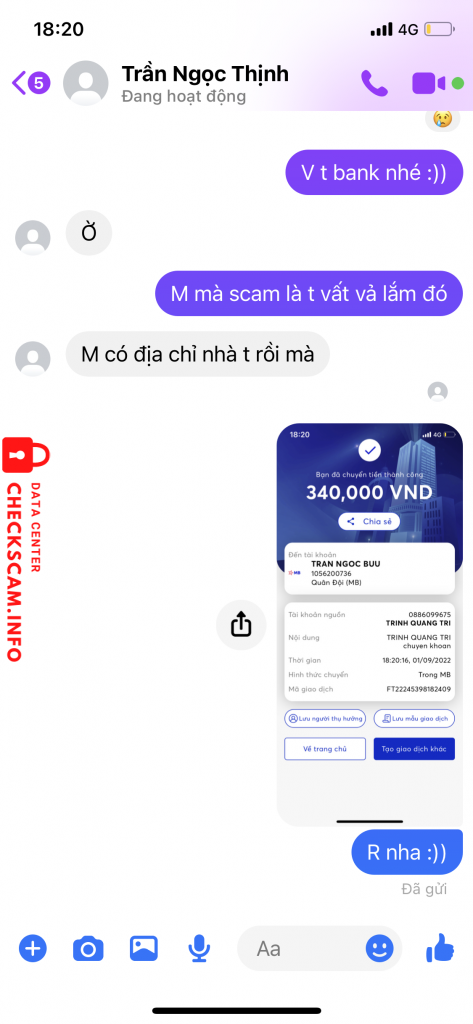 Scammer Alert: TRAN NGOC BUU Reported: November 16, 2024 Scammer Information Full Name: TRAN NGOC BUU Phone Number: 0354545614 Payment Gate: Mb bank Payment Account: 1056200736 Category: Marketplace scams Source: Checkscam Evidence Files Report Description Trần Ngọc Thịnh 2k7 lừa đảo acc như trong ảnh và Trần Ngọc Thịnh đều là 1 Cẩn thận với momo của nó 035454614 luon nha mn Comments Your comment Add Comment No comments yet. Be the first to share your experience with this scammer.