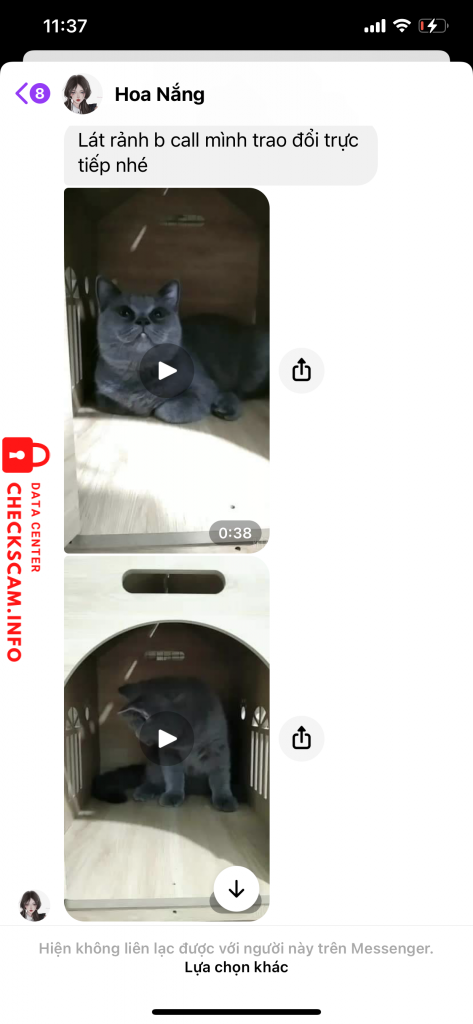 Scammer Alert: TRẦN NGỌC QUANG Reported: November 16, 2024 Scammer Information Full Name: TRẦN NGỌC QUANG Payment Gate: Agribank Payment Account: 4807205261883 Category: Marketplace scams Source: Checkscam Evidence Files Report Description Lừa đảo bank tiền cọc mèo . Dàn dựng đã giao mèo lên xe quay clip có tài xế đồng bọn tinh vi Comments Your comment Add Comment No comments yet. Be the first to share your experience with this scammer.