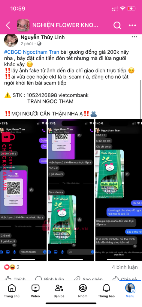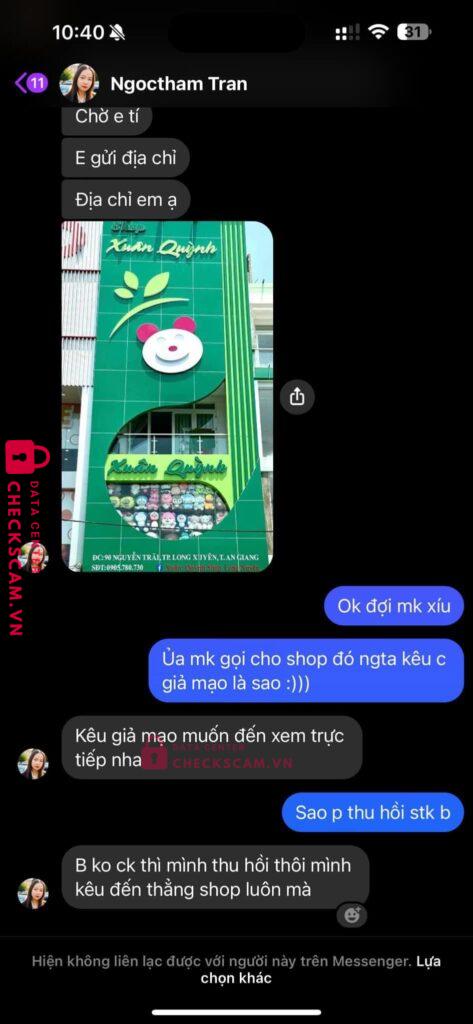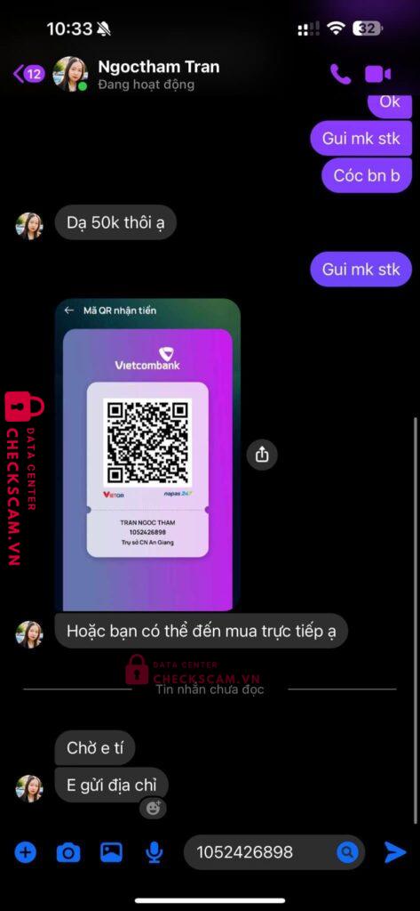 Scammer Alert: TRAN NGOC THAM Reported: March 7, 2025 Scammer Information Full Name: TRAN NGOC THAM Payment Gate: VIETCOMBANK Payment Account: 1052426898 Category: Marketplace scams Source: Checkscam Evidence Files Report Description Giả mạo shop Xuân Quỳnh lên bán đồ, hiện tại chưa thấy ai chuyển khoản nhưng chắc chắn người đó là scam Comments Your comment Add Comment No comments yet. Be the first to share your experience with this scammer.