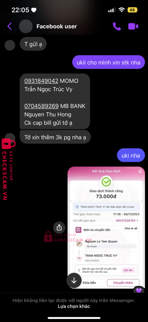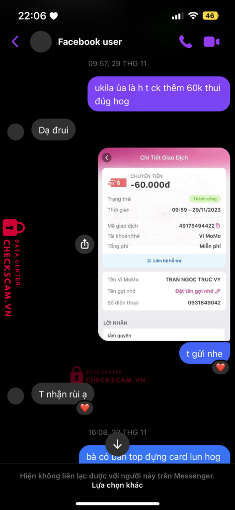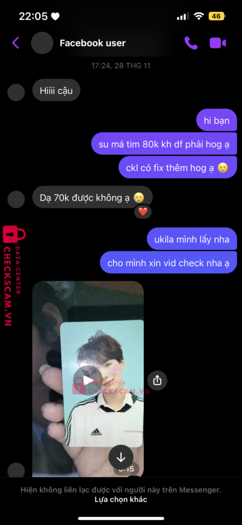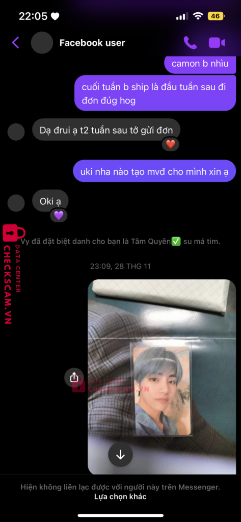 đăng bán card idol BTS lừa mọi người chuyển khoản hơn 10 người, số tiền hơn 1 triệu, có bài check legit bằng cách chơi Give Away khiến mọi người tin tưởng, mượn số tài khoản ngân hàng của người khác để đi scam, hẹn giao dịch trực tiếp với những bạn ở tp HCM và hẹn ngày 4/12/2023 để ship hàng cho mọi người nhưng đến giờ thì xoá tài khoản, không tìm được thông tin, mất tích
