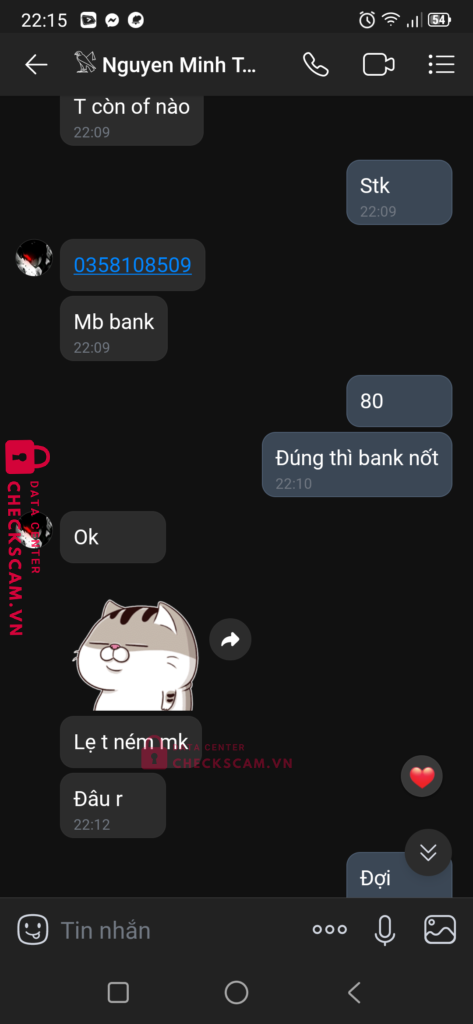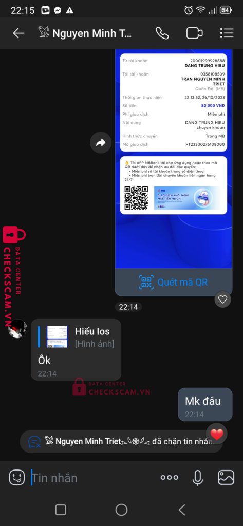 Scammer Alert: TRAN NGUYEN MINH TRIET Reported: November 16, 2024 Scammer Information Full Name: TRAN NGUYEN MINH TRIET Payment Gate: MB bank Payment Account: 0358108509 Category: Marketplace scams Source: Checkscam Evidence Files Report Description Comments Your comment Add Comment No comments yet. Be the first to share your experience with this scammer.