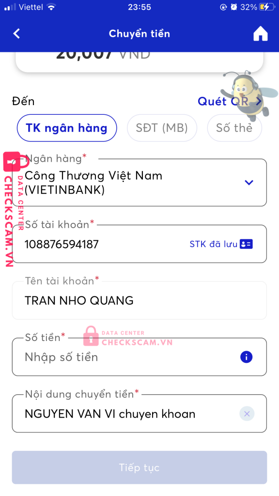 Scammer Alert: Trần Nho Quang Reported: November 16, 2024 Scammer Information Full Name: Trần Nho Quang Payment Gate: Viettinbank Payment Account: 108876594187 Category: Marketplace scams Source: Checkscam Evidence Files Report Description Back acc tik tok Comments Your comment Add Comment No comments yet. Be the first to share your experience with this scammer.
