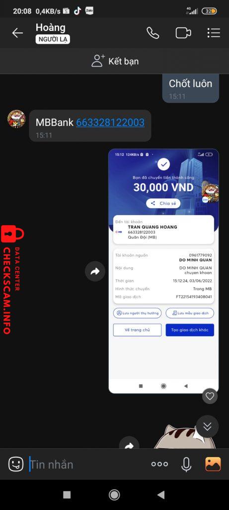 Scammer Alert: TRAN QUANG HOANG Reported: November 16, 2024 Scammer Information Full Name: TRAN QUANG HOANG Payment Gate: Mbbank Payment Account: 663328122003 Category: Marketplace scams Source: Checkscam Evidence Files Report Description Mua acc Facebook cổ có khoá trang cá nhân bị nó scam Comments Your comment Add Comment No comments yet. Be the first to share your experience with this scammer.