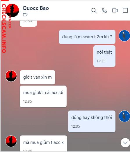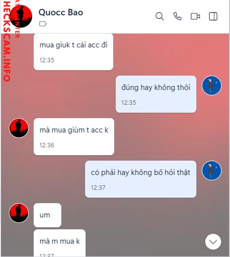 Scammer Alert: Trần Quốc Bảo Reported: November 16, 2024 Scammer Information Full Name: Trần Quốc Bảo Phone Number: 0326813291 Payment Gate: Momo Payment Account: 0326813291 Category: Marketplace scams Source: Checkscam Evidence Files Report Description Scam 2m mua acc free fire xong lại kêu giam rồi sủi 1 thời gian sau ib lại hỏi mua 5m sub Comments Your comment Add Comment No comments yet. Be the first to share your experience with this scammer.