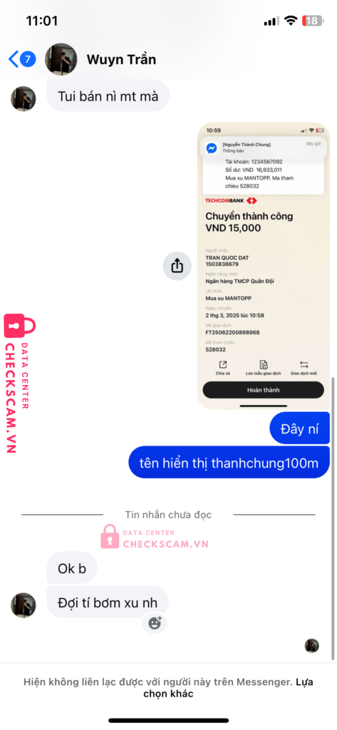 Scammer Alert: Tran quoc dat Reported: March 7, 2025 Scammer Information Full Name: Tran quoc dat Payment Gate: Mb Payment Account: 1503838679 Category: Marketplace scams Source: Checkscam Evidence Files Report Description Thanh niên chuyên scam tiền game qua mạng đã nhiều lần Comments Your comment Add Comment No comments yet. Be the first to share your experience with this scammer.