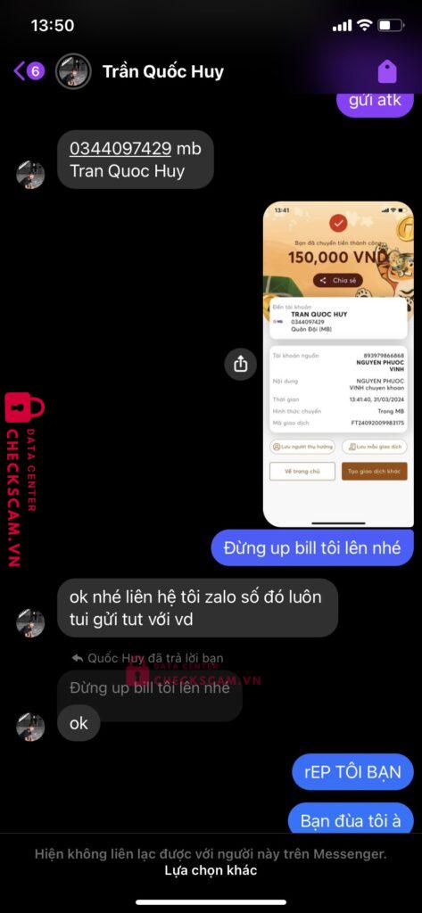 Scammer Alert: Trần Quốc Huy Reported: November 16, 2024 Scammer Information Full Name: Trần Quốc Huy Payment Gate: MB BANK Payment Account: 0344097429 Category: Marketplace scams Source: Checkscam Evidence Files Report Description Bán Tut 956 Comments Your comment Add Comment No comments yet. Be the first to share your experience with this scammer.