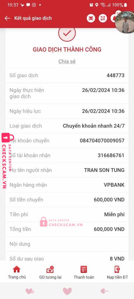 Scammer Alert: Tran Son Tung Reported: November 16, 2024 Scammer Information Full Name: Tran Son Tung Payment Gate: VPBANK Payment Account: 316686761 Category: Marketplace scams Source: Checkscam Evidence Files Report Description Em họ mình bị hack fb, đứa mất dạy scam nó tinh vi đến nỗi dùng stk có tên giống với tên e họ mình luôn :)))) Comments Your comment Add Comment No comments yet. Be the first to share your experience with this scammer.