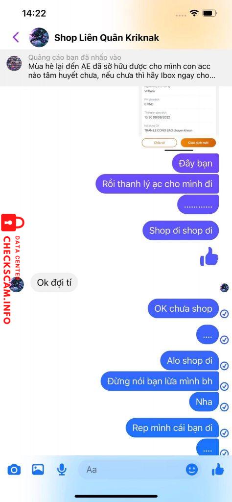 Scammer Alert: Tran Thanh Lam Reported: November 16, 2024 Scammer Information Full Name: Tran Thanh Lam Payment Gate: VP Bank Payment Account: 234762238 Category: Marketplace scams Source: Checkscam Evidence Files Report Description Lừa Đảo mua bán acc liên quân Comments Your comment Add Comment No comments yet. Be the first to share your experience with this scammer.