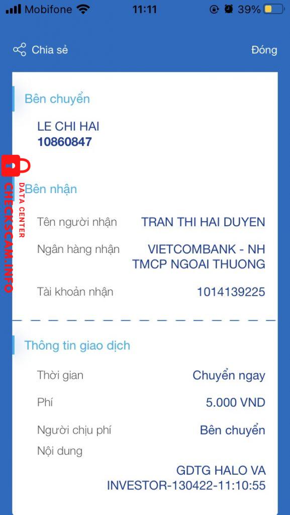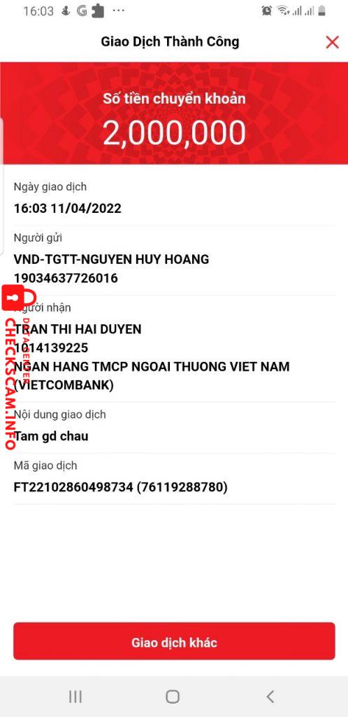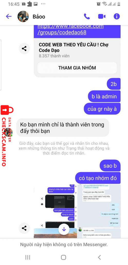 Lừa đảo nhận viết code và sửa phần mềm. Đối tượng tìm bên trung gian là chủ Group nhưng cũng là lừa đảo sau đó nhờ tiến hành giao dịch trung gian. Sau khi trung gian nhận tiền thì thằng viết code biến mất cùng với bên trung gian là chủ Group. Mình đã làm việc với nhiều nạn nhân và cùng quy về số tài khoản này. Tài khỏa
