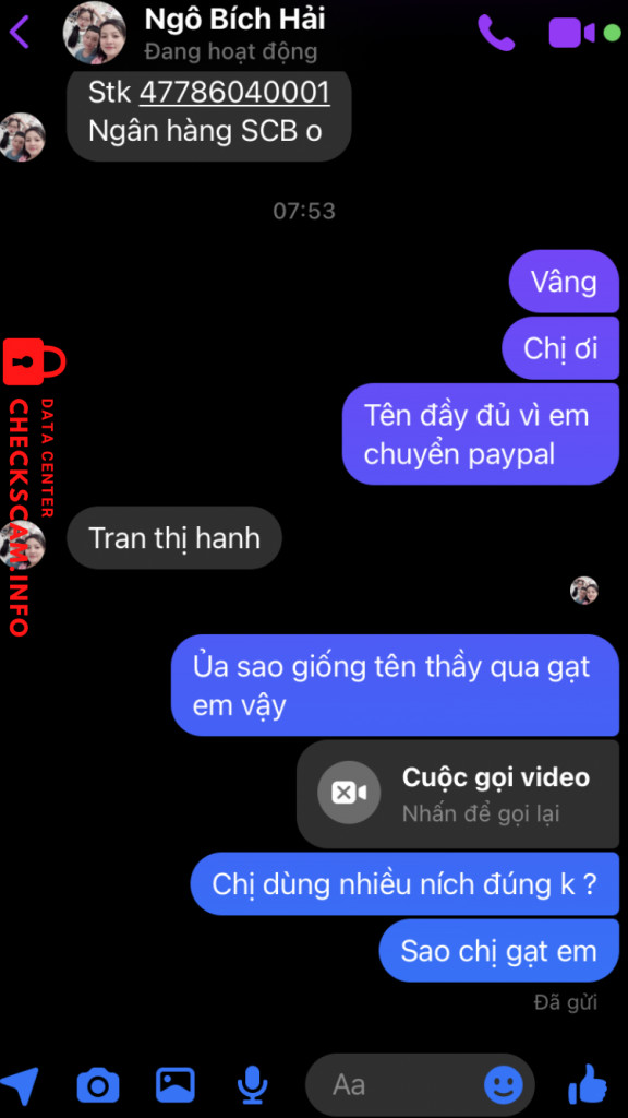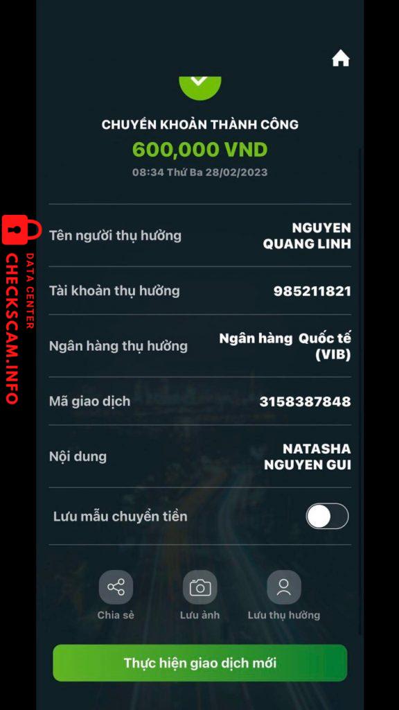 Hai số tài khoản này là một lừa đảo lập nhiều ních xong bảo làm lễ rồi yểm bùa bị vật dọa dẫm mình sợ quá mọi người tránh hai số tài khoản : SCB 47786040001 Trần thị Hạnh và vib 985211821 Nguyễn Quang Linh mình bị lừa mấy triệu rồi