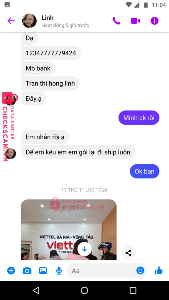 Scammer Alert: Trần Thị Hồng Linh Reported: November 16, 2024 Scammer Information Full Name: Trần Thị Hồng Linh Payment Gate: MB Bank Payment Account: 12347777779424 Category: Marketplace scams Source: Checkscam Evidence Files Report Description Facebook không chính chủ, bị hack rồi đổi tên đăng bán Google Pixel 5. Lừa cọc rồi lấy nhiều lý do không ship được hàng, sau đó bùng cọc. Comments Your comment Add Comment No comments yet. Be the first to share your experience with this scammer.
