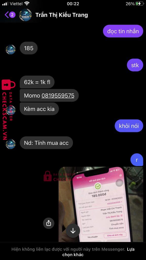 Scammer Alert: Trần Thị Kiều Trang
