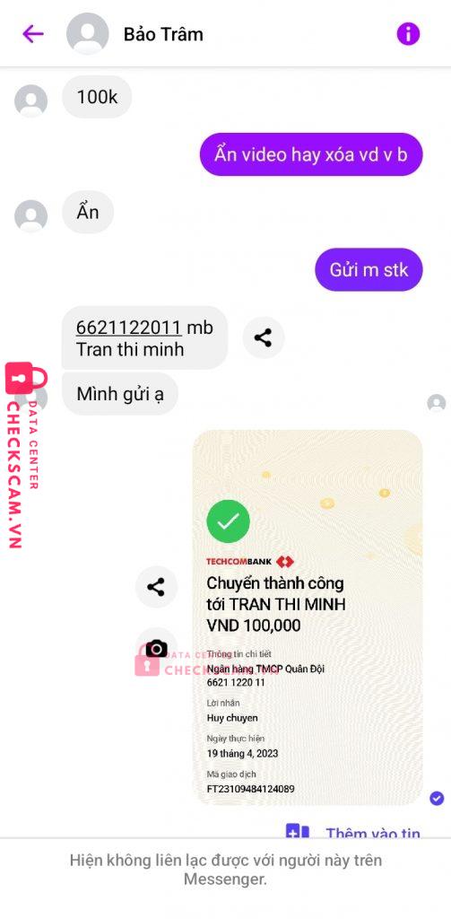 Scammer Alert: Tran thi minh Reported: November 16, 2024 Scammer Information Full Name: Tran thi minh Payment Gate: Mb Payment Account: 6621122011 Category: Marketplace scams Source: Checkscam Evidence Files Report Description Comments Your comment Add Comment No comments yet. Be the first to share your experience with this scammer.