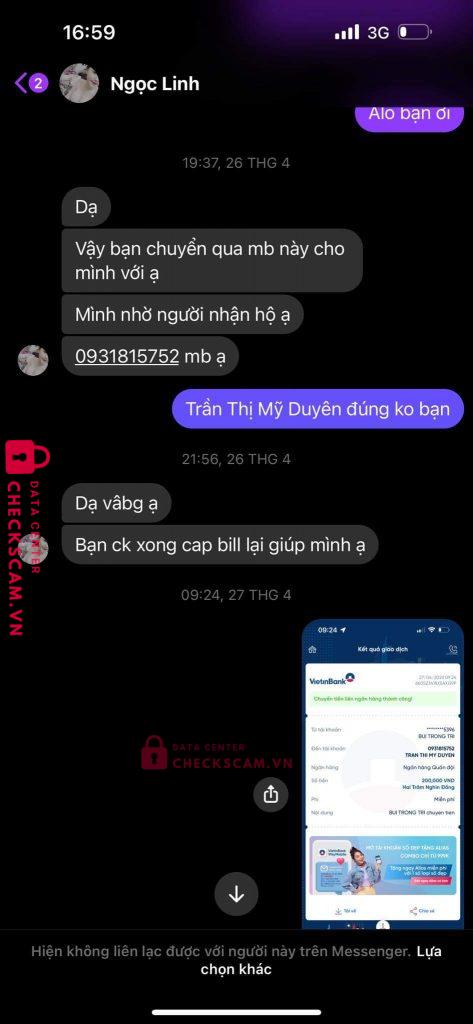 Scammer Alert: Trần Thị Mỹ Duyên