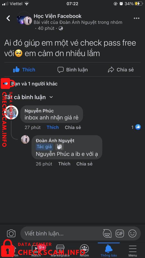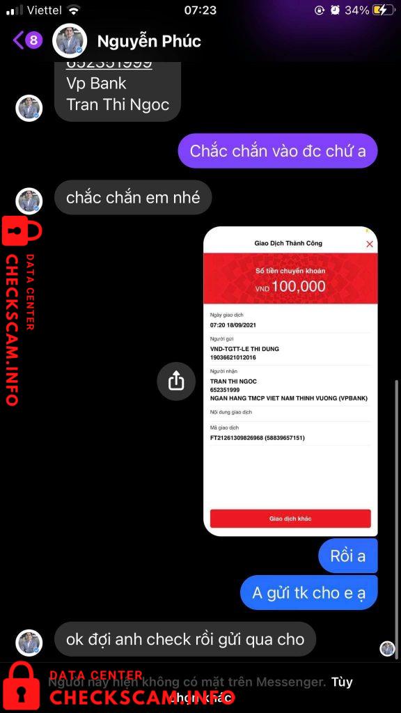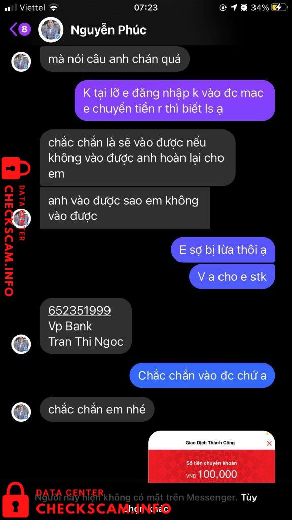 Scammer Alert: Tran Thi Ngoc Reported: November 16, 2024 Scammer Information Full Name: Tran Thi Ngoc Payment Gate: TMCP Viet Nam Payment Account: 652351999 Category: Marketplace scams Source: Checkscam Evidence Files Report Description anh này nhờ lấy lại fb nhưng sau khi chuyển tiền thì anh ấy chặn Comments Your comment Add Comment No comments yet. Be the first to share your experience with this scammer.