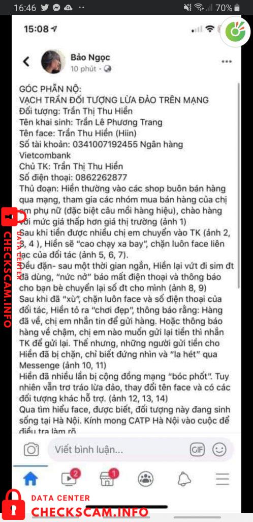 Scammer Alert: Trần Thị Thu Hiền