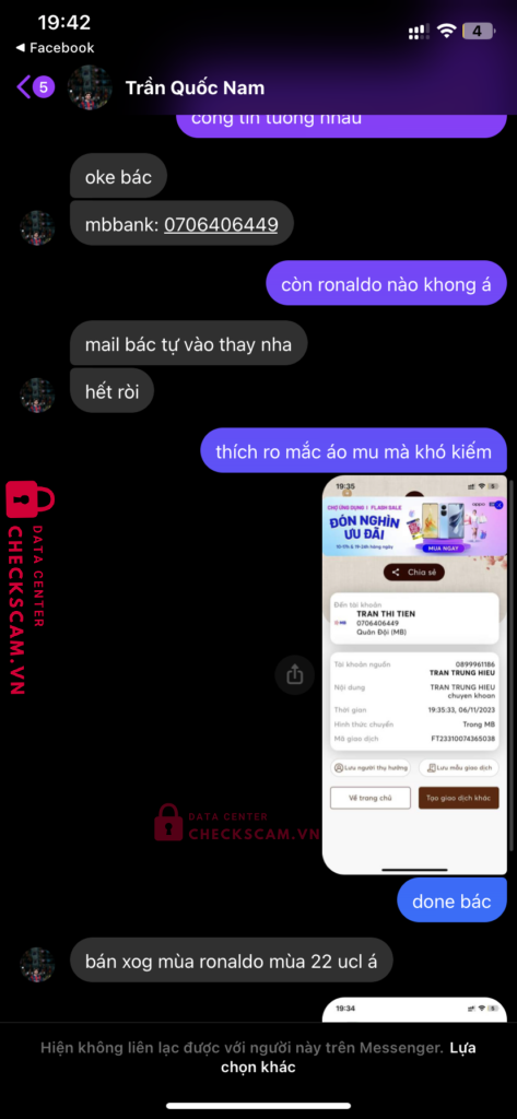 Scammer Alert: Trần Thị Tiên Reported: November 16, 2024 Scammer Information Full Name: Trần Thị Tiên Payment Gate: Mbank Payment Account: 0706406449 Category: Marketplace scams Source: Checkscam Evidence Files Report Description Scam acc 20k fifa Comments Your comment Add Comment No comments yet. Be the first to share your experience with this scammer.