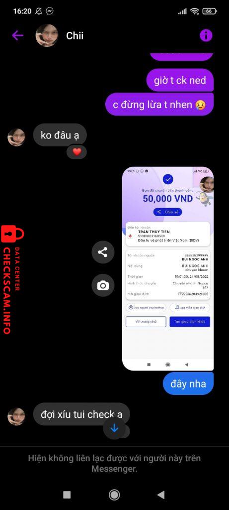 Scammer Alert: Tran Thuy Tien Reported: November 16, 2024 Scammer Information Full Name: Tran Thuy Tien Payment Gate: Vietcombank Payment Account: 1019510869 Category: Marketplace scams Source: Checkscam Evidence Files Report Description Cọc tiền xong qua hôm sau block -))) Comments Your comment Add Comment No comments yet. Be the first to share your experience with this scammer.